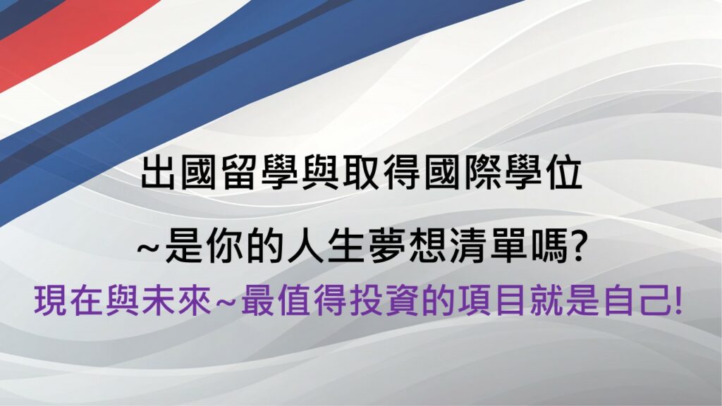 出國留學與取得國際學位~ 是你的人生夢想清單嗎? 選擇進修提升自我、實現夢想通往成功帶著你的知識熱情、接軌世界邁向未來 …